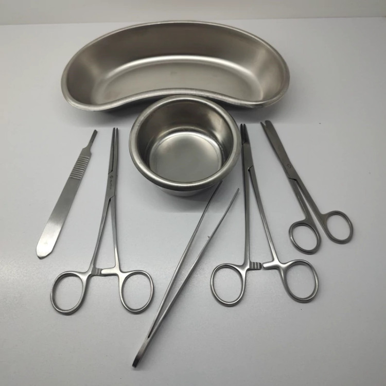 ست بخیه ۷ تیکه قابل شستشو شامل پنس هموستات، سوزنگیر ۱۶ سانت استیل، قیچی نخ یکسر تیز، پنست بدون دندانه، دسته بیستوری,گالیپاد و رسیور(فروش هم بصورت ست و تکی میباشد )